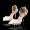 Fashion White Flower High Heel Pointed Sandals Women's Single Shoes Wedding Shoes Bride Designer Elegant Zapatos De Mujer High Heels 43