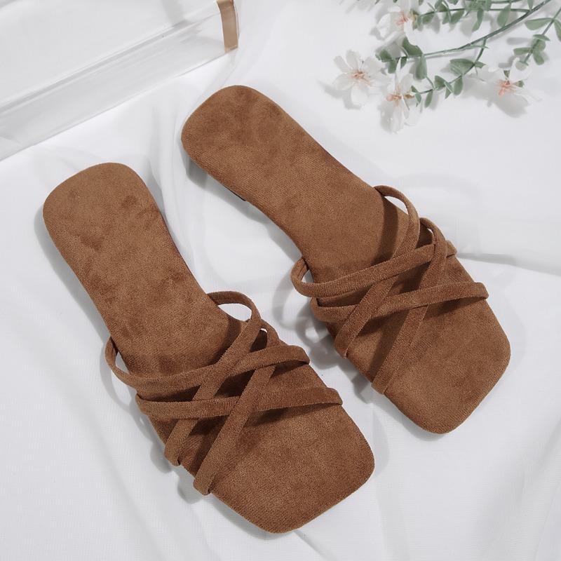 Fashion New Summer Slippers for Women Fashion Square Head Suede Cross Thin Band Open Toe Breathable Anti-slip Wear-resistant Sandals