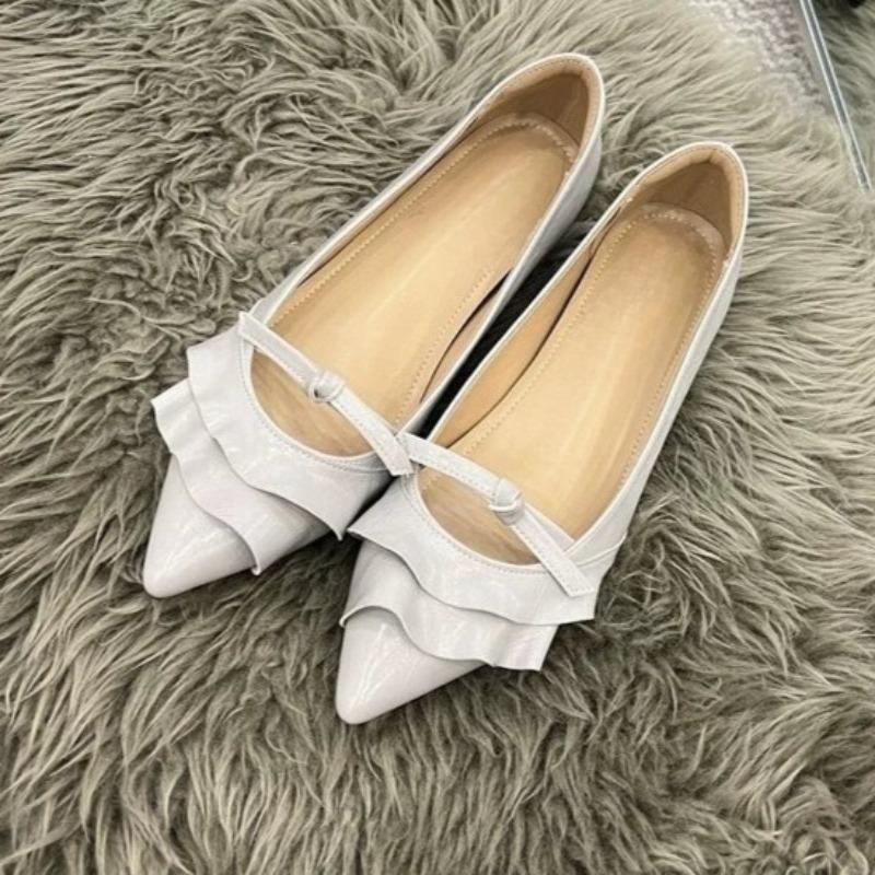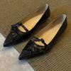 Fashion Women's Flat Single Shoes Fall New Pointed Toe Shallow Mouth Ruffle Bow Soft Sole Non-Slip Low Top Shoes