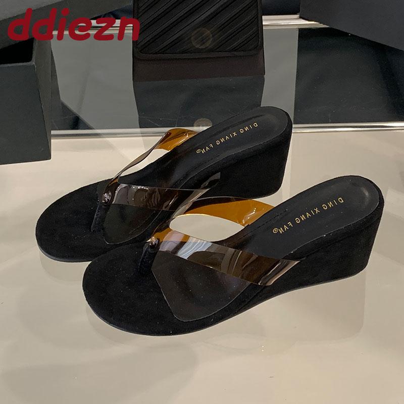Fashion 2025 New Fashion Transparent Ladies Wedges Slippers Sandals Shoes Round Toe Female Slides Women Wedges Slippers Shoes Flip Flops