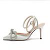 Fashion Crystal Stiletto Sandals Summer New Pointy Head Shallow Mouth Riveted Butterfly Knot Line Strap Non-slip High Heels