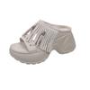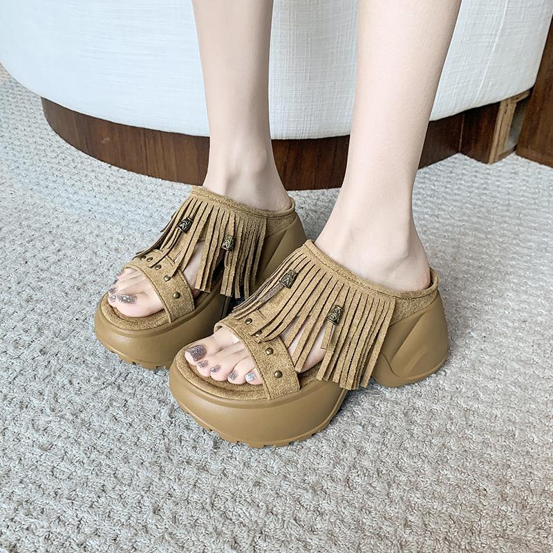 Fashion Block Heel Flip Flops Autumn New Round Toe Open Toe Suede Studded Platform Anti-Slip Wear-Resistant Slippers