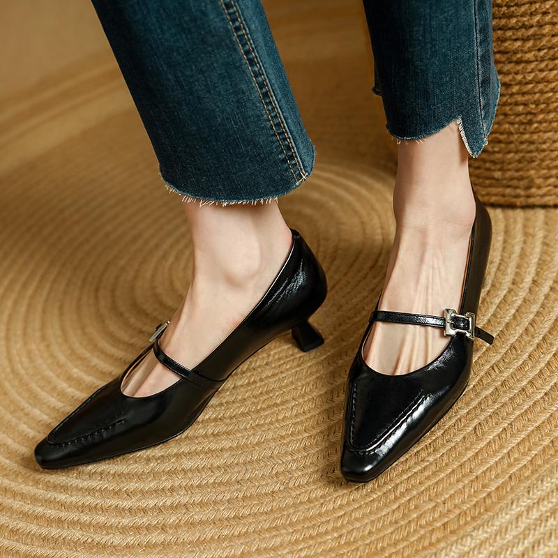 Fashion 2025 New Spring Women Pumps Genuine Leather Shoes for Women Square Toe Thin Heel Shoes Shallow Buckle Strap Mary Janes Shoes