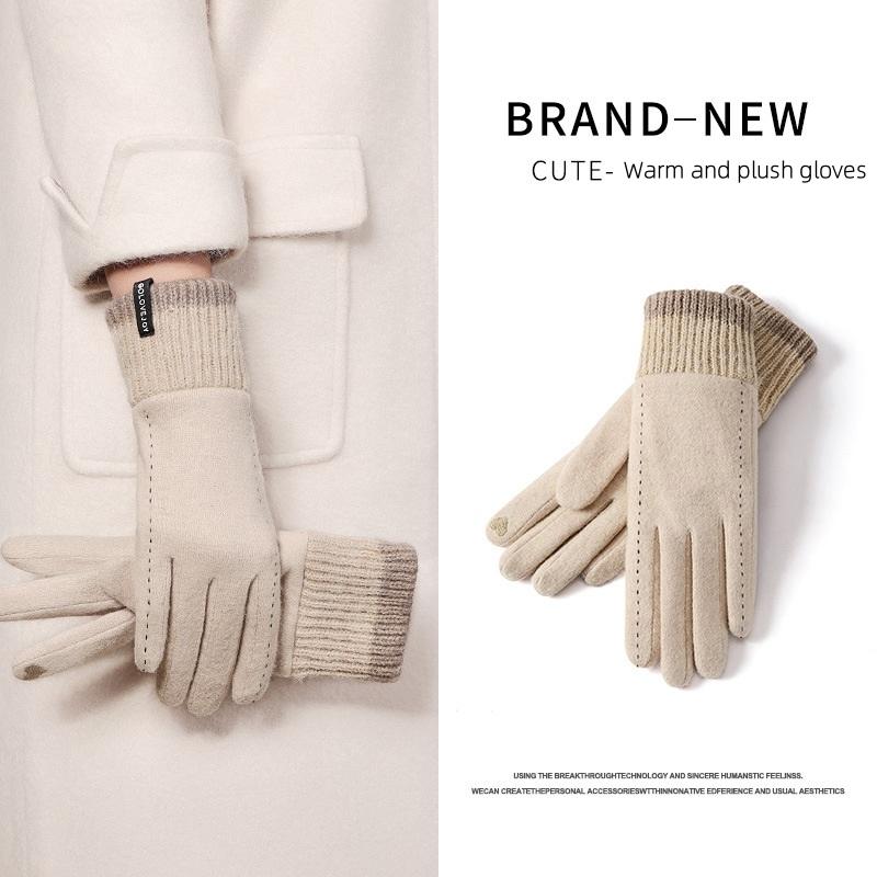 Winter 60% Cashmere Gloves for Women's Outdoor Cycling Windproof Plush and Warm Touch Screen Knitted Wrist Gloves