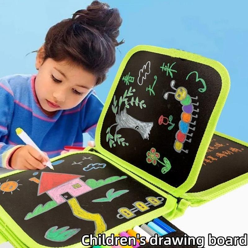 ERASABLE DOOBLE BOOK- 8x8 inches in size and has 10 pages, and comes with 3 watercolor pens. The watercolor pens are colorful, dust-free and non-toxic. After use, wipe it gently with a wet tissue to make it clean and reusable! It can stimulate your child's imagination. It is a perfect gift for kids!