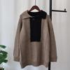 Autumn and Winter New Design Sense Contrasting Color Lapel Sweater Pullover Lazy Wind Loose Knitted Sweater Top Women