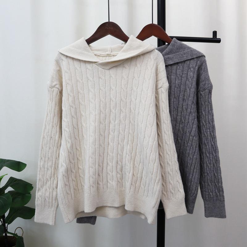 Twist Hooded Sweater Pullover Women's Autumn and Winter New Retro Loose Lazy Soft Waxy Knitted Sweater Top