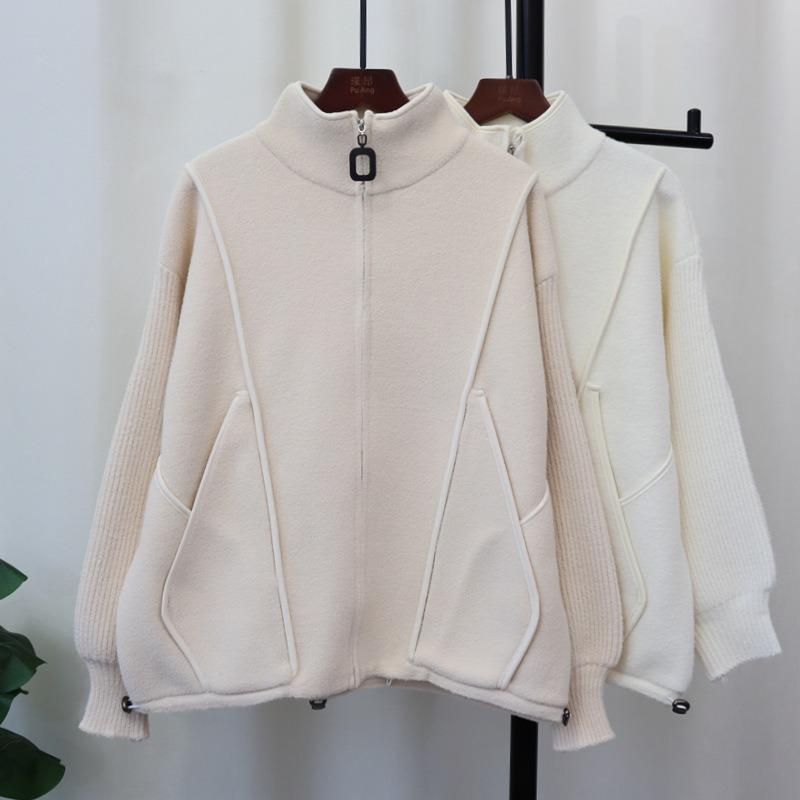 Autumn and Winter New Zipper Casual Versatile Knitted Double-sided Coat Loose Temperament Sweater Cardigan Women