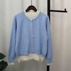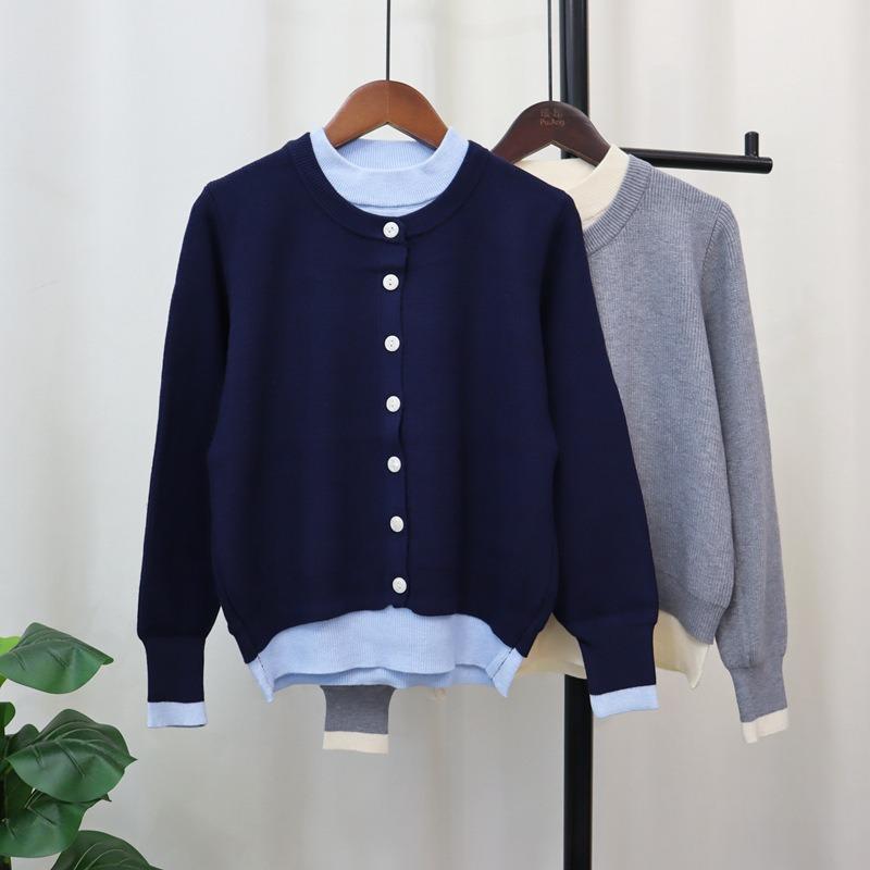 Crew Neck Fake Two-piece Knitted Cardigan Women's Autumn and Winter New Loose Contrasting Color Design Temperament Sweater Jacket