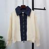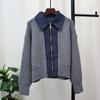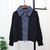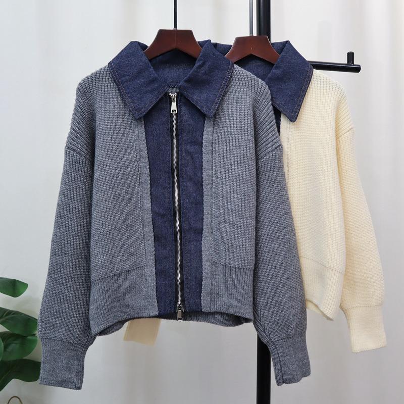 Autumn and Winter New Splicing Denim Double Zipper Knitted Cardigan Short Design Loose Sweater Jacket Women