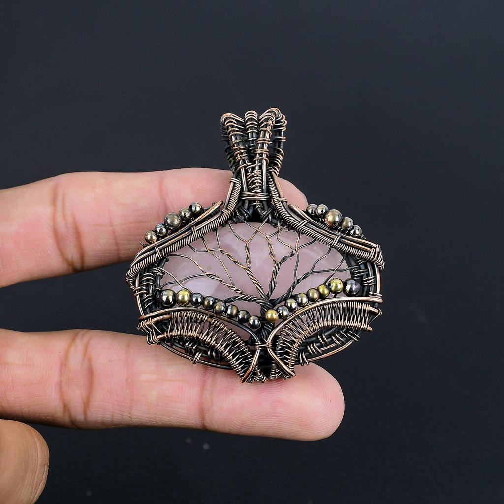 Rose Quartz Jewelry, 999 Copper Wire Wrapped Pendant Handmade Gemstone Jewelry, Gifts For Wife Brand New Pendant