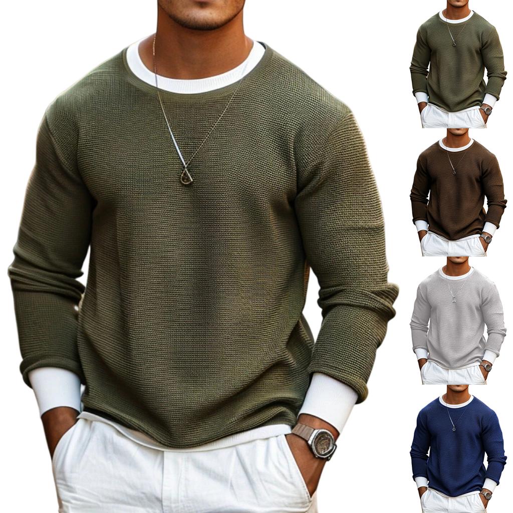 Men's Casual Colorblock Round Neck Pullover Fake Two-piece Long-sleeved Top