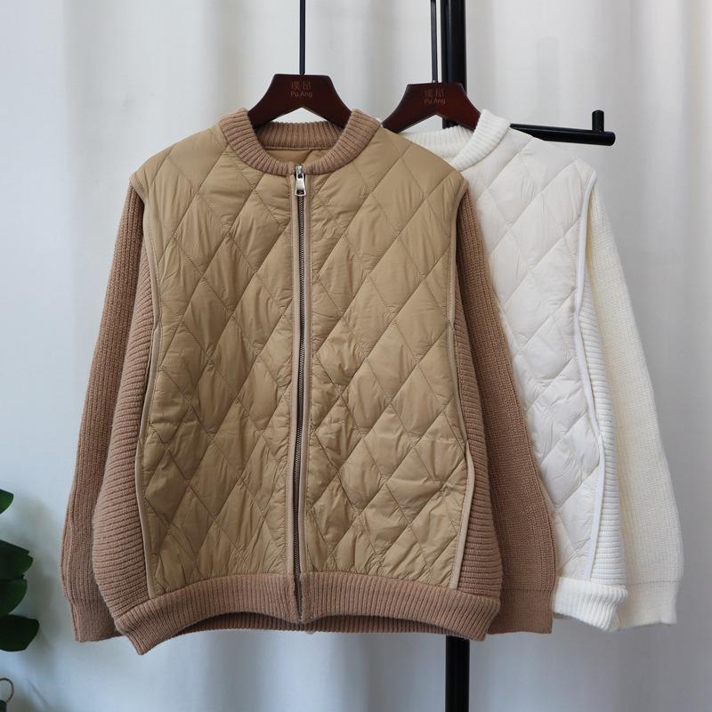 Autumn and Winter New Light and Thin Splicing Cotton Clothes Knitted Cardigan Loose Zipper Design Jacket Sweater Jacket Women