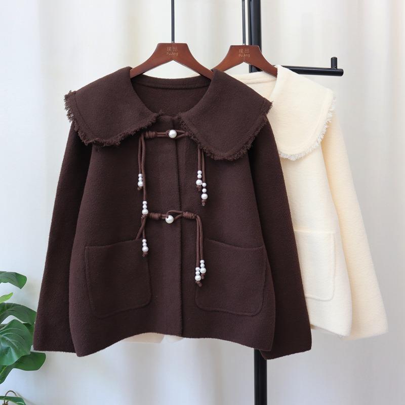 Autumn and Winter New Buckle Knitted Double-sided Cardigan Design Sense Loose Sweater Jacket Women