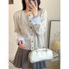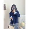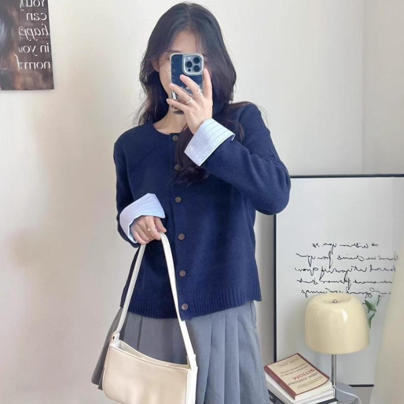 Autumn and Winter New Splicing Shirt Sleeves Knitted Cardigan Women's Loose Round Neck Versatile Temperament Sweater Jacket