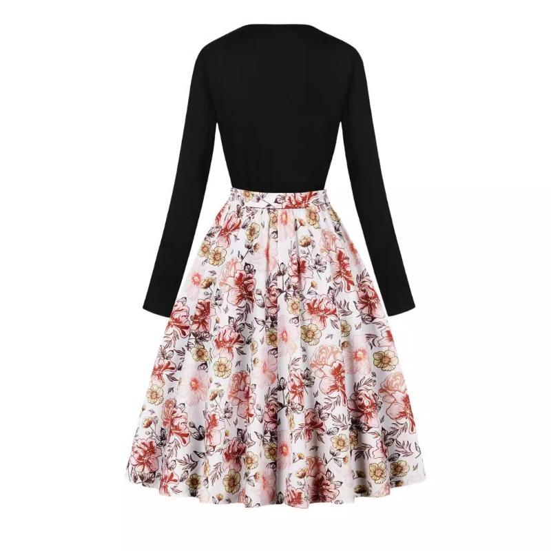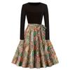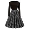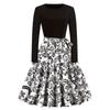 Autumn and Winter New Retro Women's Clothing Round Neck Long-sleeved Black Spelling Print Pendulum Dress