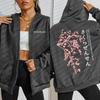 Japan Cherry Blossom Creative Letter Print Women Zipper Hoody Harajuku Loose Hoodie Fashion Fleece Streetwear Retro Top