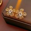 Zircon Hollow Grid Flower Earrings for Women 2025 Fashion Versatile Simple Temperament Stud Earring High-end Accessories