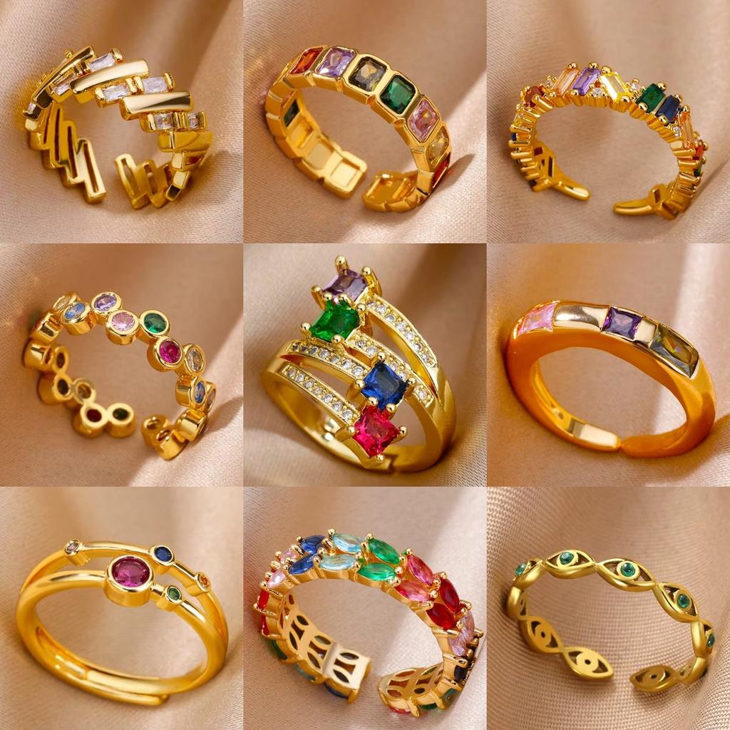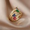 Luxry Colorful Zircon Opening Rings For Women Stainless Steel Gold Color Irregular Geometric Shiny Crystal Ring Fashion Zircon