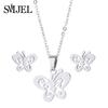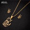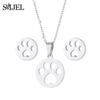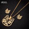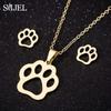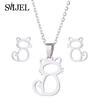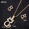 Lovely Gold Color Kitten Cat Stainless Steel Zircon Set Necklaces Men Collares Fashion Hollow Cat Earring Necklace Paw Zircon