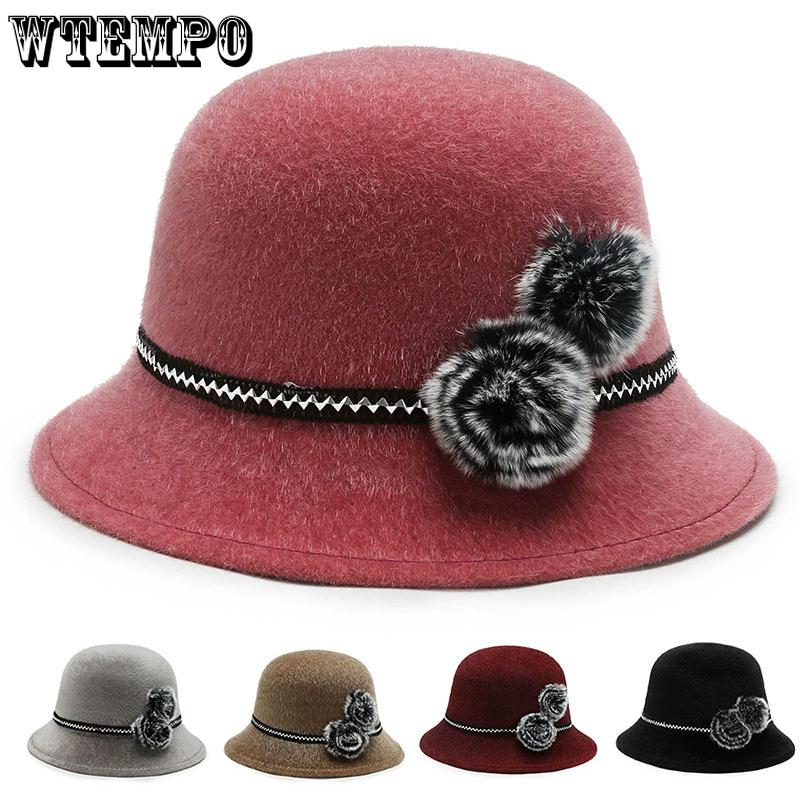 WTEMPO Women's Verstaile Casual Retro Elegant Top Hats Women's Autumn Winter Cold-proof Windproof Warm Solid Color Hats