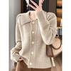 Polo Neck Knitted Cardigan Jacket Sweater Women's Autumn and Winter Lapel Thickened Outer Knitted Sweater Top Tide