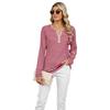 European and American Women's Autumn and Winter V-neck Contrast Striped Loose Long-sleeved Ladies T-shirt
