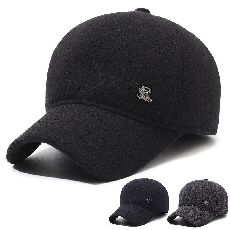 Hat Men's Autumn and Winter Wool Baseball Cap Versatile Middle Aged and Elderly People with Velvet Warm Hat Dad's Ear Protection Baseball Cap