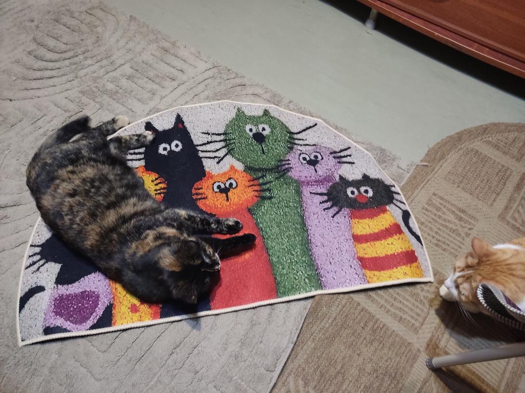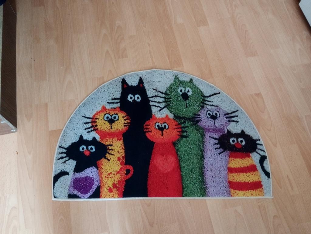 The mats are good, it's a shame there aren't any rectangular ones like these for the bathroom. It's a pity to put such cute faces under dirty shoes. I put a 60*90 one in front of the bed, for my feet. You look at them and your mood improves.