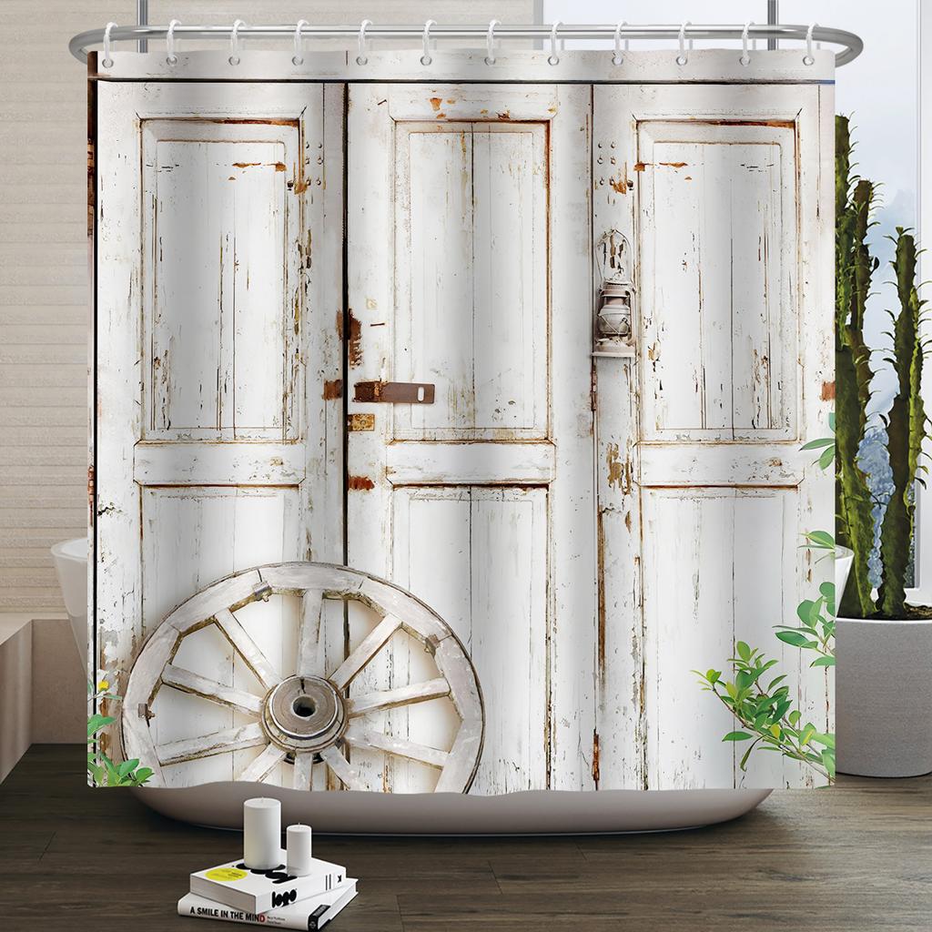 Retro Wood Door Shower Curtain Farmhouse Country Vintage Farm Barn Wooden Waterproof Polyester Shower Curtain for Bathroom Decor