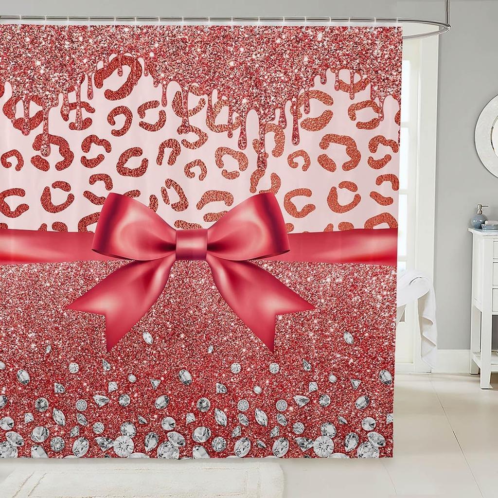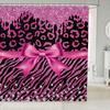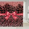 Pink Bowknot Glitter Shower Curtain Abstract Leopard Cheetah Zebra Skin Girls Women Bow-tie Shining Diamond Bathroom Curtain