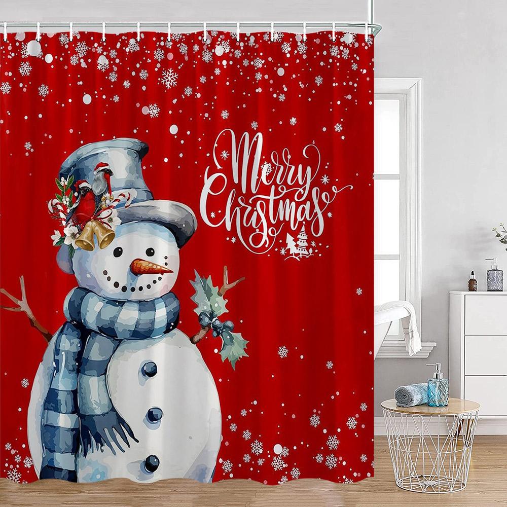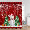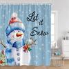 Christmas Snowman Happy New Year Shower Curtain Merry Christmas Winter Snowy Snowflake Pine Bathtub Decor Polyester Bath Curtain