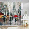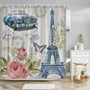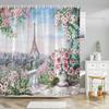 Paris Eiffel Tower Pink Shower Curtain Valentine's Day Flowers and Butterflies Polyester Washable Shower Curtains Bathroom Decor