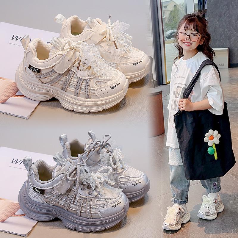 Girls' Sports Shoes Are Comfortable and Breathable Fashion Dad Shoes 2025 Autumn New Foreign Style Pearl Bow Princess Shoes