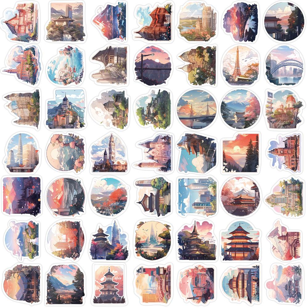 50 INS World Landscape Pictures Graffiti Stickers Personalized Decorative Guitar Notebook Suitcase DIY Waterproof Stickers