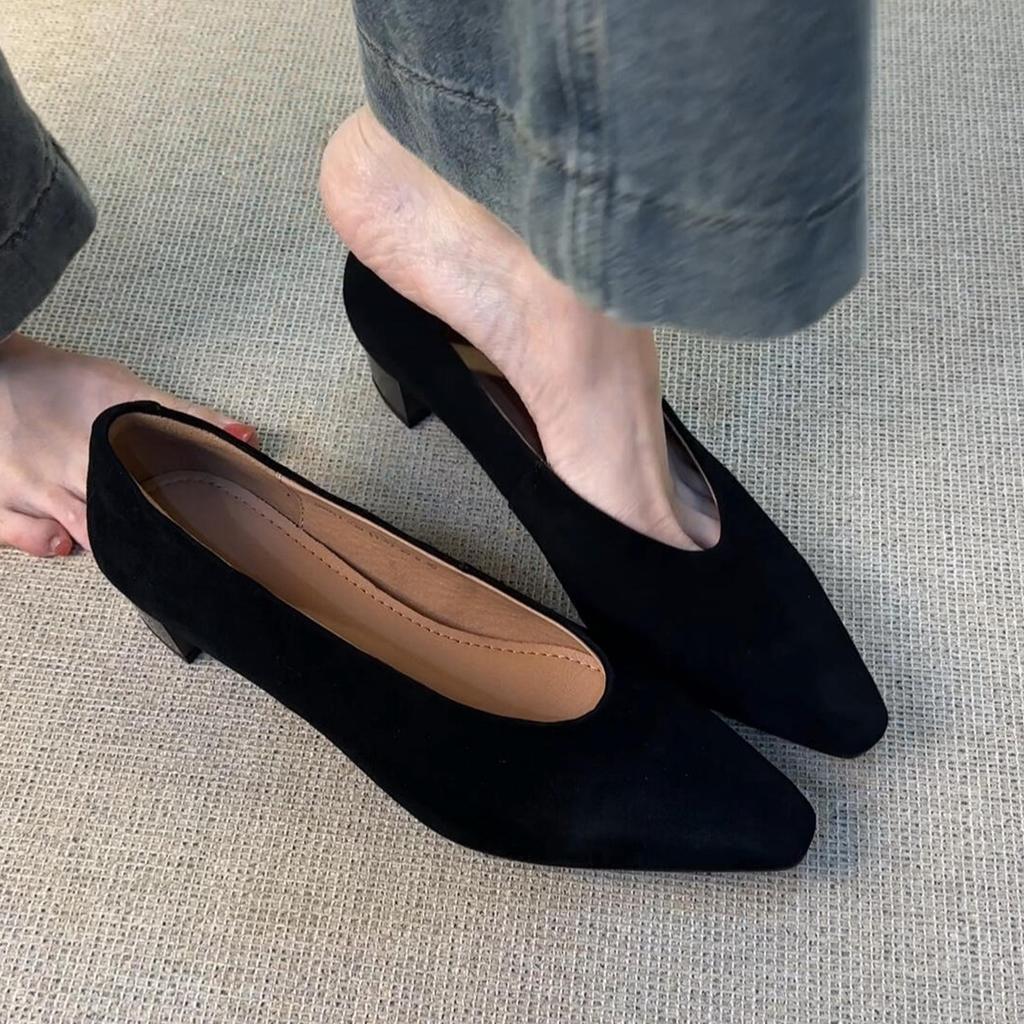 Commuter Matte Leather Simple One-pedal Single Shoes Women's French Light Mouth Square Head Retro Thick Heel Grandma Shoes