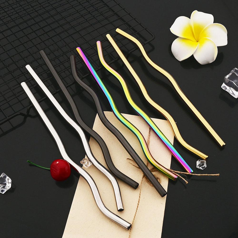 8*235mm Wave Reusable Coloful Straw Set 304 Stainless Steel Straw Bent Drinking Straw With Cleaning Brush Home Bar Accessory