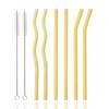 8Pcs 200*8mm Glass Straws Wavy Pink Drinking Straw Set with Brush High Borosilicate Glass Straw Kitchen Party Bar Drinkware