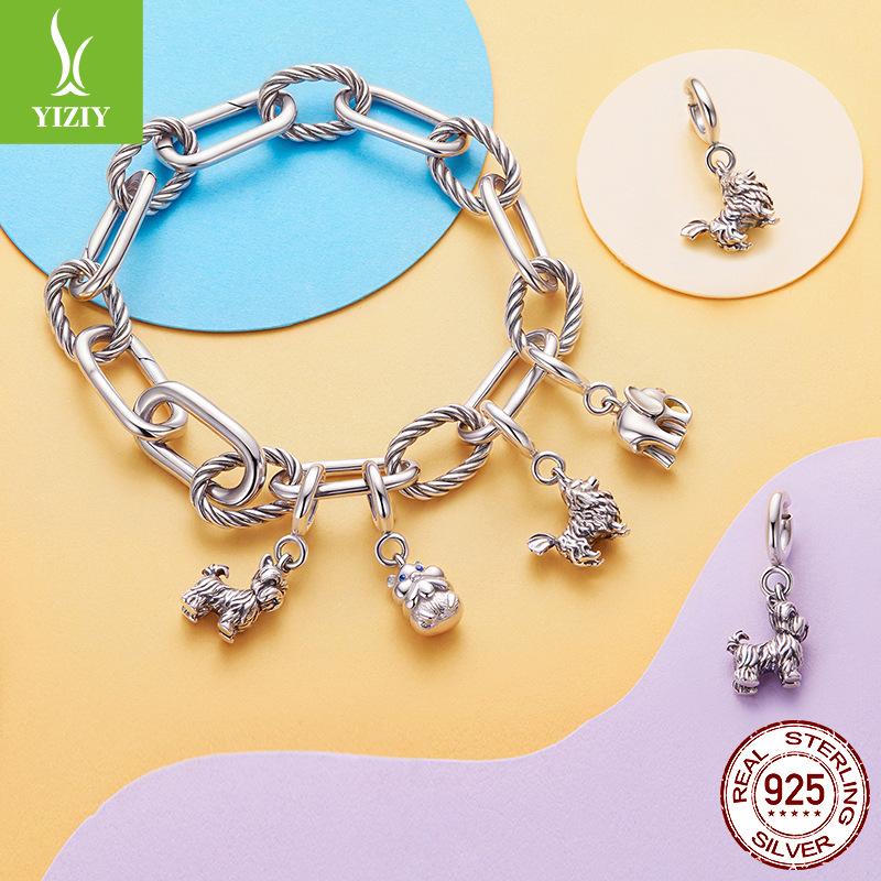 Baby Elephant Pomeranian Diy Pendant Accessories, Cute Animal S925 Sterling Silver Beaded Opening And Closing Button Head