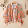 ZANZEA Women Casual V-Neck Loose 3/4 Sleeve Print Cover Up Blouse