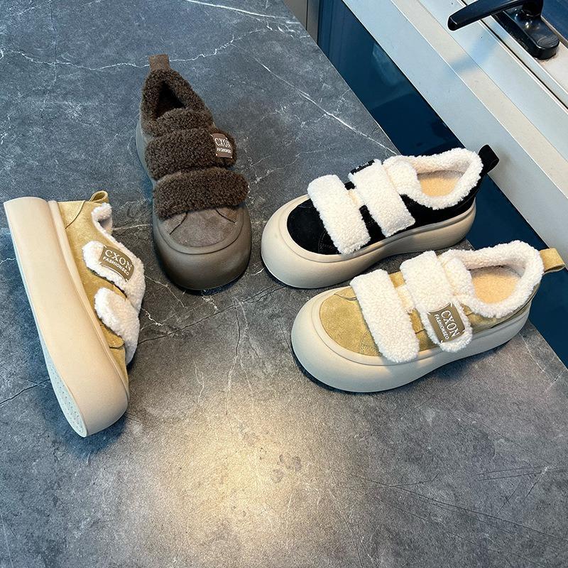 Leather Little White Shoes Women's Winter New Velvet Warm Velcro Women's Shoes Casual Versatile Thick Baseplate Shoes Women