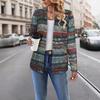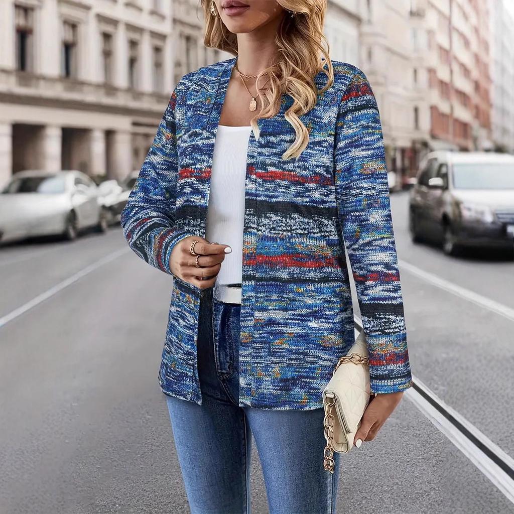Autumn New Women's Wear Printed Knitted Sweater Cardigan, Colorful Contrasting Striped Top, Suit Jacket