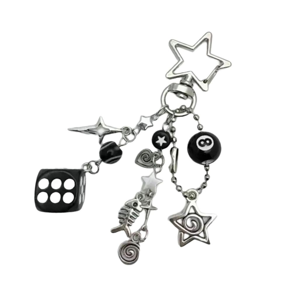 Practical Unique Star Black Eight Keychain With Dices Designs Accessory for Trendy Adults and Game Enthusiasts