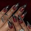 Halloween Press On Nails Almond Fake Nails Spider Acrylic Nails Glossy False Nails Stick On Nails Full Cover Fake Nails