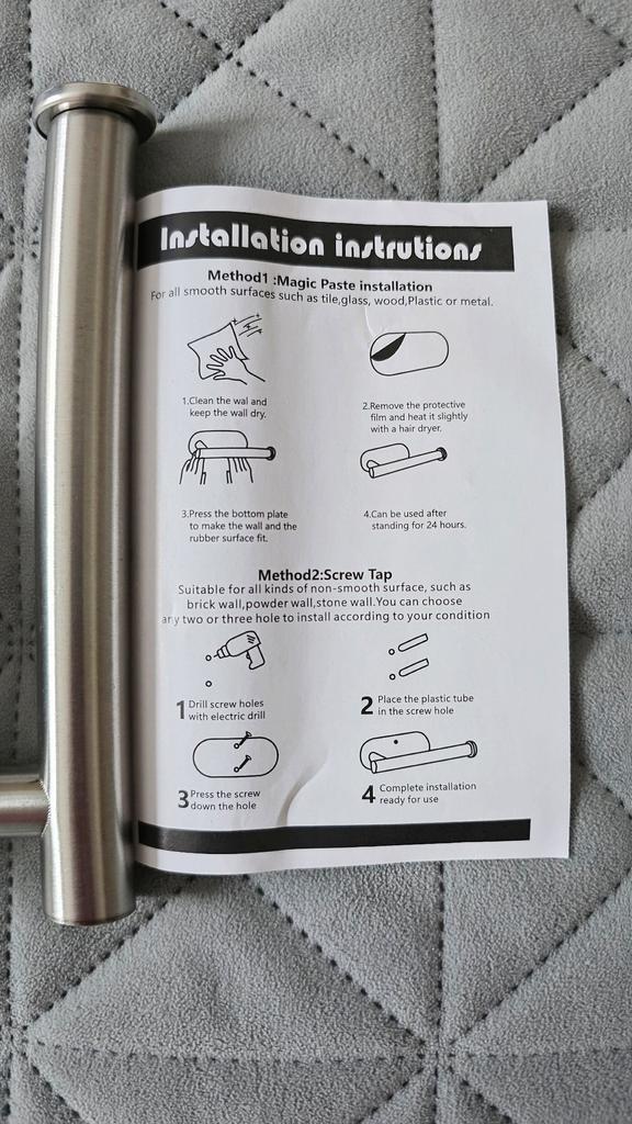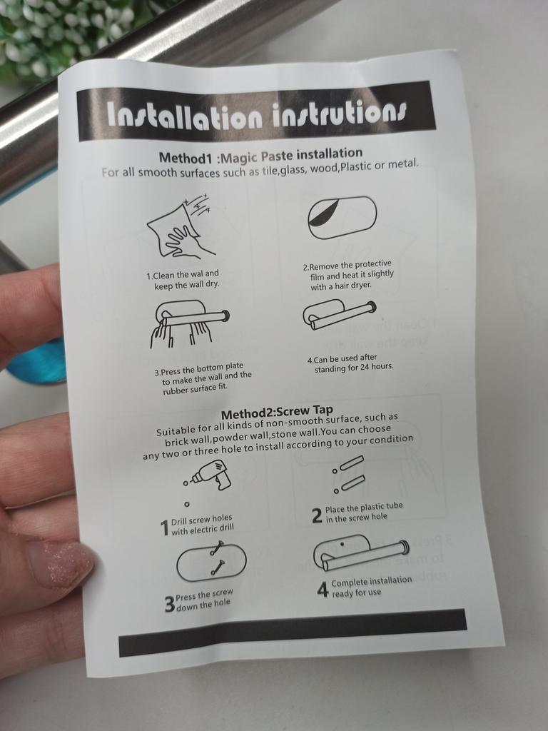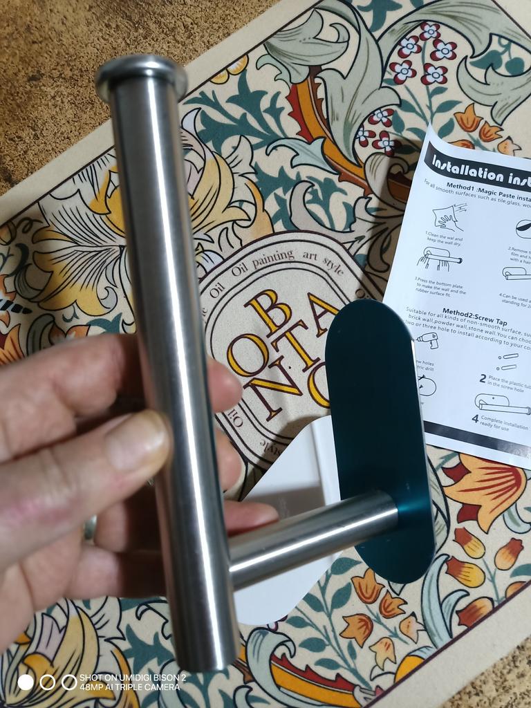 Stainless Steel Toilet Paper Holder โ Useful, Elegant and Easy to Install! I ordered this paper holder for wall mounting, and I'm really satisfied! First of all, it looks great โ a clean and modern design that fits perfectly in the kitchen or bathroom. Made of high-quality stainless steel, it feels sturdy and durable over time.. The installation was very simple โ within a few minutes it was hung and ready for use. It doesn't take up much space, but manages to hold a paper towel or toilet roll easily and conveniently. Excellent also for those looking for a space-saving solution โ organizes the space without the need for complicated drilling or additional furniture. Highly recommended!