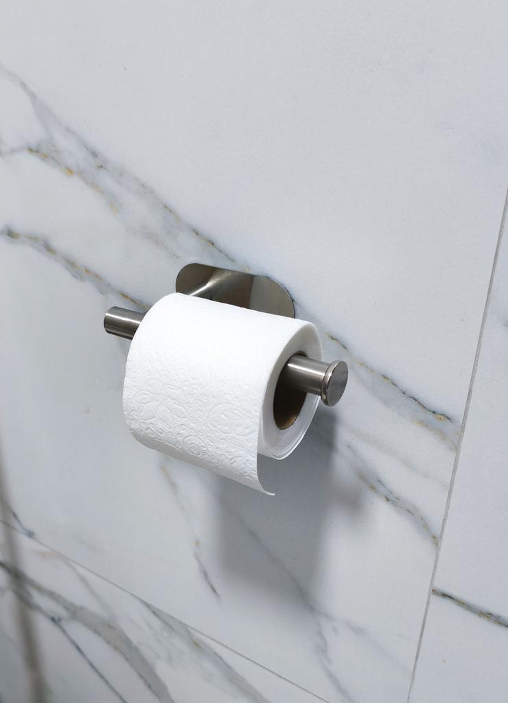 Wall Mounted Toilet Paper Holder Clean lines, minimalist design. Good quality. Looks good and solid. Mounts with double-sided tape. The mounting surface is large enough and it holds securely and doesn't fall off.. I recommend ๐ค