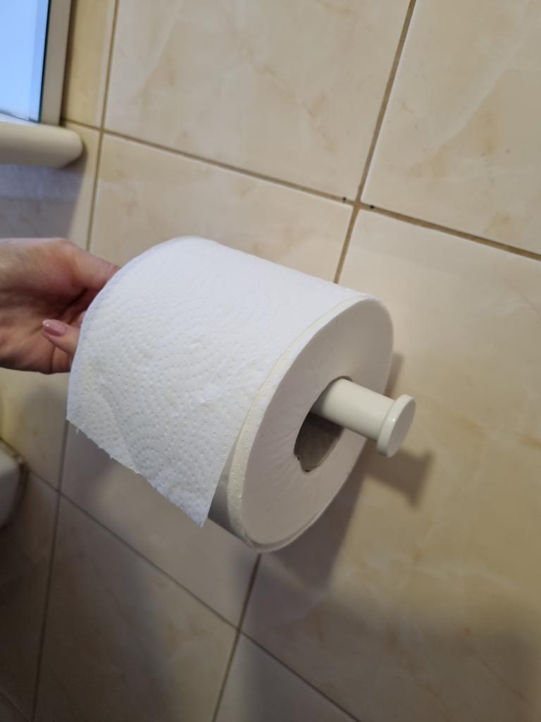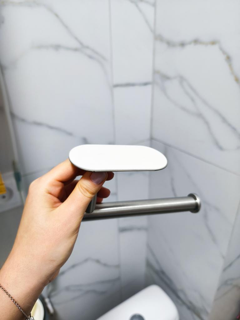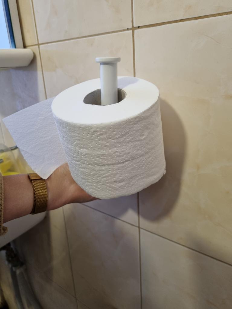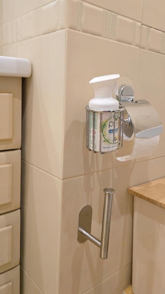 Excellent toilet paper holder ๐ Laconic design. Simple mounting (3M double-sided tape), no drilling.