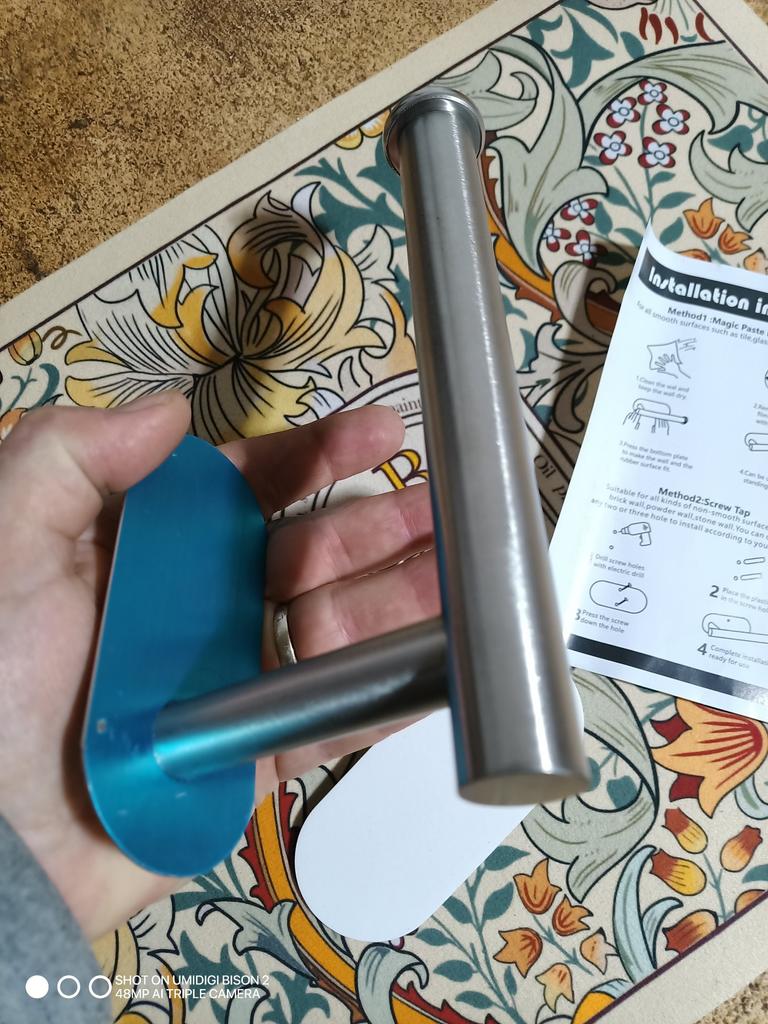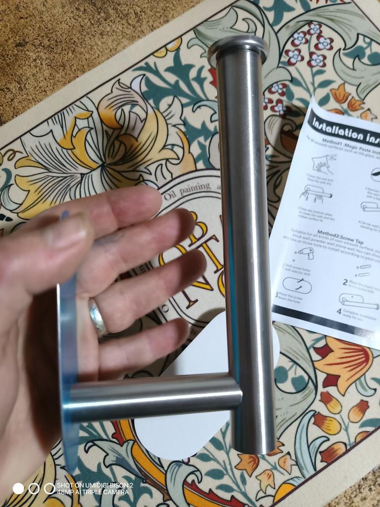 There isn't much to comment on about this product, it's a holder for the toilet paper roll. I recommend it ๐ ๐ ๐๐คฉ ๐ ๐ ๐. ๐ฆ Package Content: Holder for the roll of toilet paper. Adhesive. ๐Pros: Delivery to Spain in 26 days. โ๏ธ Well packed for the trip. Material is stainless steel. Very easy to attach thanks to its adhesive with built-in hook. It's really very useful. ๐Cons: Nothing important to note. .