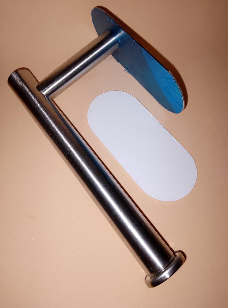 Wall Mounted Toilet Paper Holder. Made from stainless steel. Attaches to the surface with double-sided tape. Made qualitatively, without defects. Size 16.5 cm by 8 cm. Recommend.