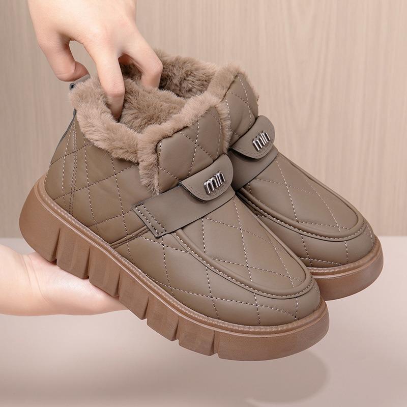 Snow Boots Cotton Shoes Women's Leather Beanie Shoes Winter New Soft-soled Piled Thickened Warm Fashionable Versatile Cotton Boots